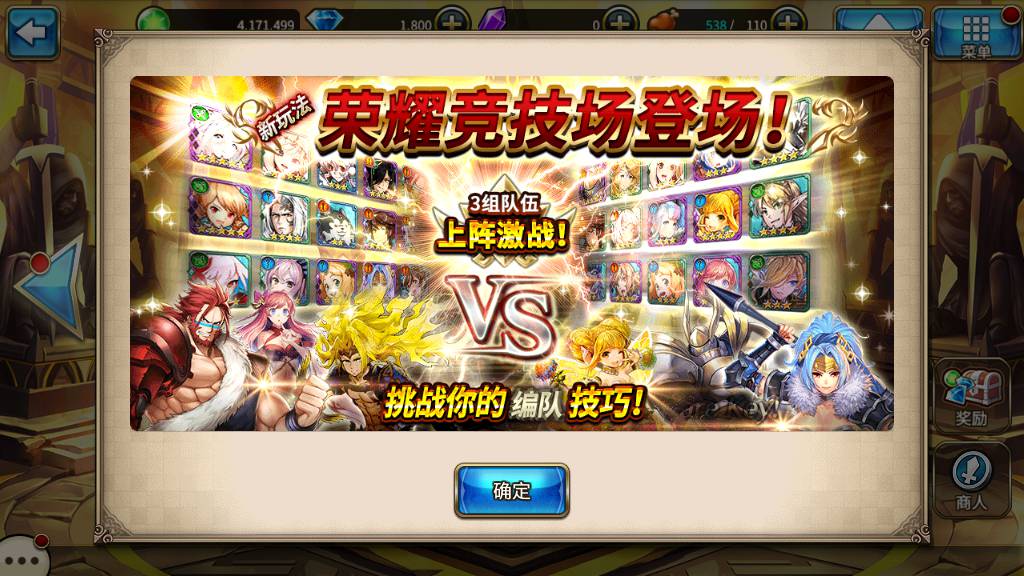 荣耀竞技场是除了普通竞技场外,在各位勇士等级达到30级以后才开启的3V3逐对PVP战斗玩法,在这里大家可以体验到比普通竞技场更刺激,更紧张的战斗模式。
