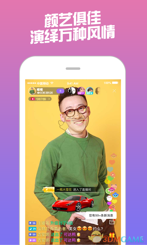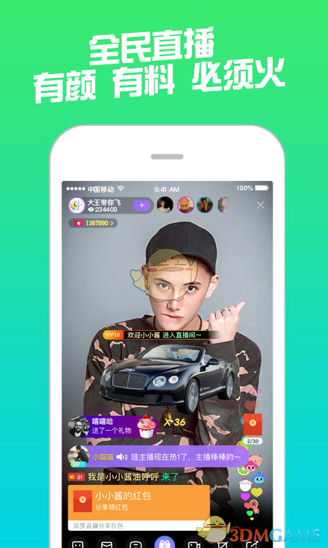 可以共同交流分享各种有趣的话题,萌妹女神随意选择,还可以通过排行榜快速查找感兴趣的直播,给您带来更加精彩的观看体验。详细齐全的分类,让您筛选到喜欢的直播表演,快速参与进行互动,可以定制个人专属座驾,吸引更多眼球,彰显个人魅力。自己有兴趣也可以做主播,拍摄各种原创视频,吸引大批粉丝来成就你的明星梦,拿起手机,快乐就是这么简单。欢迎有兴趣的朋友下载体验!