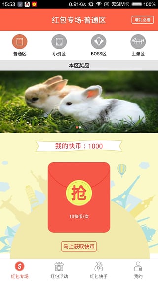 3、“红包专场”提供了红包豆抢红包,拼手气赢大奖;