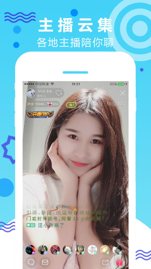 1、观看直播:主播为你视频直播K歌唱响,表演逗趣,喊麦搞怪,永久免费欣赏;