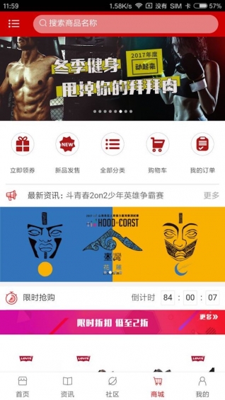 3、商城:专业的运动商城,提供最潮流的运动产品,满足爱运动的你。