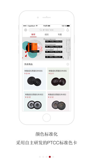 精准匹配:平台所有面辅料商品对接PTCC色彩标准,标注PTCC色号实现标准化,通过颜色搜索可精准匹配面辅料商品,有效降低面辅料色差;