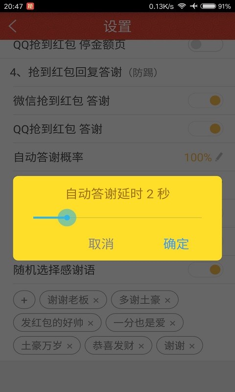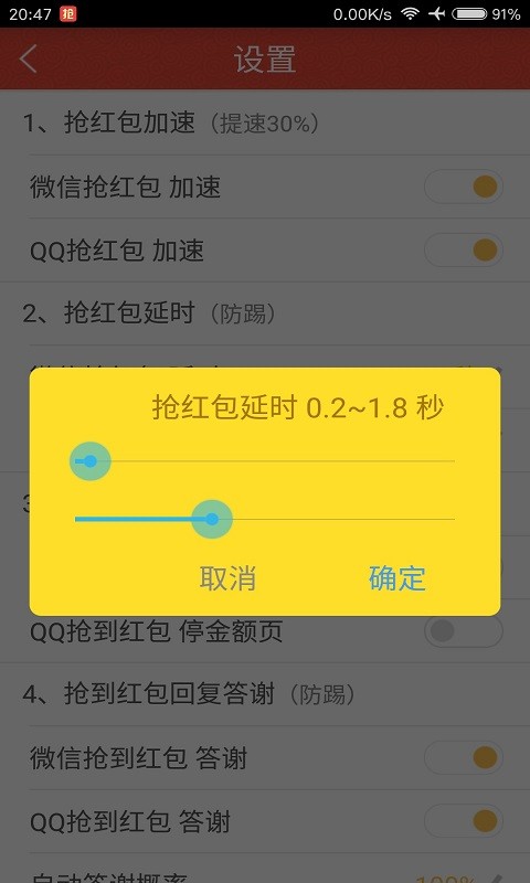 附加微信抢红包延时功能,自由控制延时拆微信红包的时间;