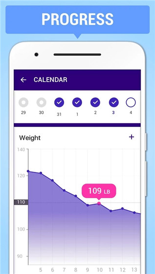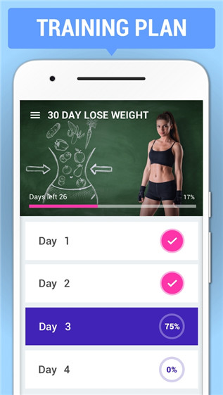您可以查看图表追踪减肥进度,并清楚看到您消耗的卡路里。您还可以设定减肥目标,自我激励。由于运动强度逐步增加,不要忘记每三天休息一次调整身体。