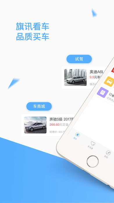 《旗讯看车》是一款手机看车软件。用户可以在软件内浏览最新的汽车资讯,还能一键预约试驾,体验自己钟意车辆的操作手感。如果用户需要买车,还能提供汽车贷款服务。还不快来下载吧。