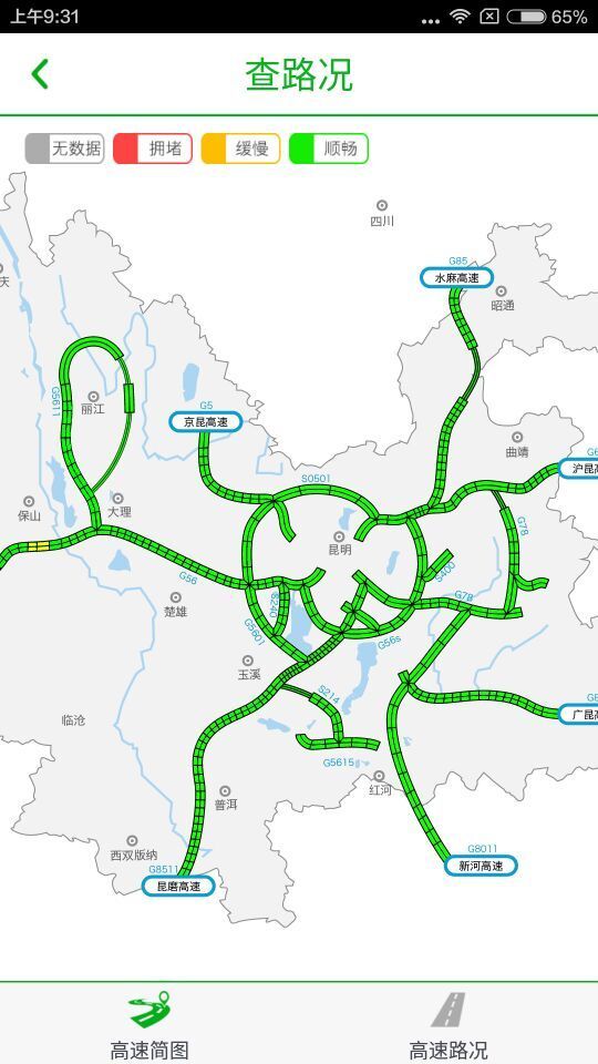 云南高速通app是一款云南高速公路出行信息服务平台,整合云南省实时路况、高速服务设备信息、路况导航、路费查询、路况报料等高速服务查询功能,为公众出行提供准确、便捷、个性化的交通信息服务。