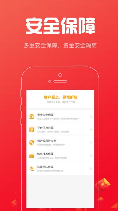 2、采用安全高效的256位加密方式传输数据,拥有完善的风控体系,为用户打造一个高收益,安全放心的投资平台;
