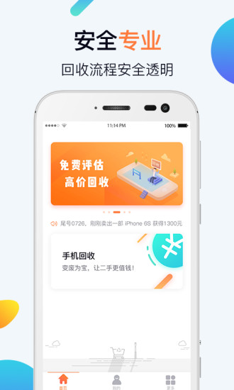 app通过百万回收商实时竞价为用户提供高价、安全、便捷”的一站式手机回收服务,变废为宝,就来马上回收!
