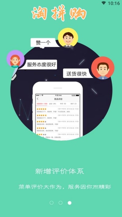 轻松购物,方便快捷。《淘拼购》是一款超级实用的手机购物的软件。在淘拼购软件内,精选了海量的商品资源,每天都有百万商品资源优惠特卖,各种优惠折扣活动等你来体验。海量的商品资源,各种类型的商品资源,只要你想买的商品,都能轻松的在这里搜索的到,而且还有大额的优惠券可以免费的领取的到,轻松的省钱购物。