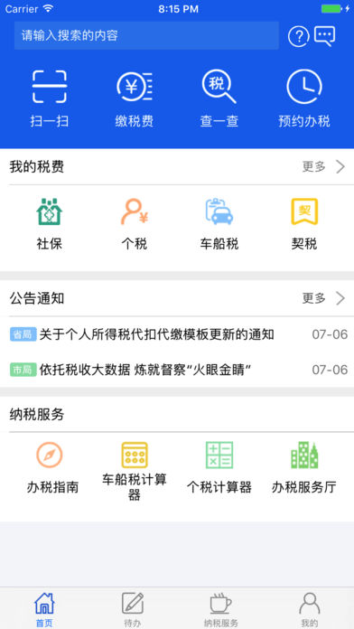 4、主要实现纳税人端重量级的功能应用,如:办税服务、税收咨询、税收法规、纳税人学堂、税收信息检索、媒体点评、涉税信息查询、税务工具箱、涉税信息推送、一户式档案等相关功能。