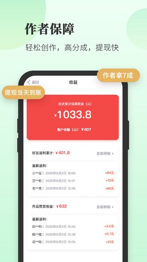 豆花阅读是一个充满脑洞的中篇小说原创平台。豆花阅读app是一个专注于中篇小说原创、阅读的平台,作者可以自由的创作,读者可以轻快的阅读,并且邀请好友加入豆花阅读,还能获得返利、赚钱哦,所获得的收益当天是可以提现的,不管你是作者还是读者,都可以在豆花阅读app找到归属感。