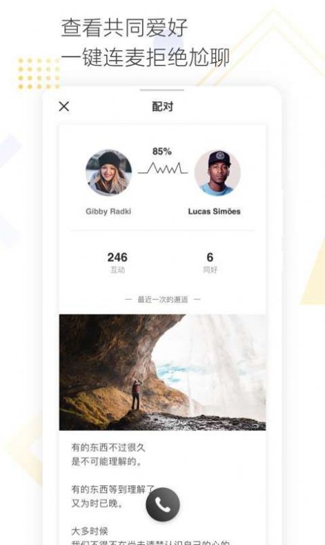 依据客户兴趣标识,缘份大圣配对的TA,即时视频面对面交朋友,闲聊约会交友不难堪。