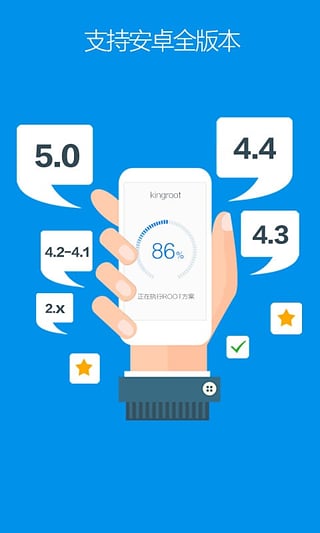 《king root》是一款Android手机一键Root工具软件,kingroot几乎支持Android目前所有的版本。kingroot的一键Root的方法非常简单,只需点击“一键Root”就能让你的手机自动获取ROOT权限。