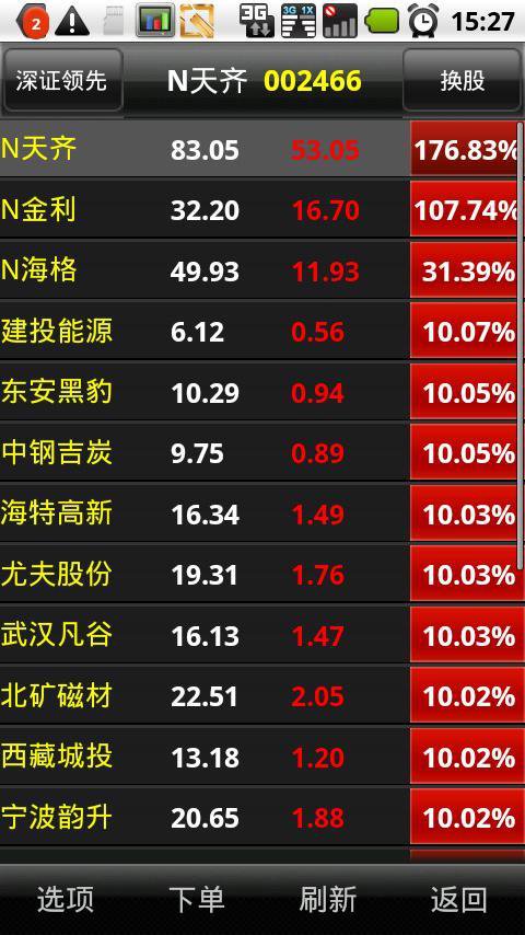 天玑版安卓客户端行情服务采用极速实时推送模式,其所产生网络流量稍大,请根据实际使用需要选用运营商合适的数据流量套餐或直接在软件上选择手动刷新行情模式(设置路径:个性设置-系统设置-行情设置-关闭“开启主推”)。