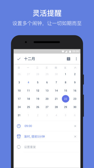 4、全能提醒:设置多闹钟、重复等自定义提醒方式,不错过任何重要事情;