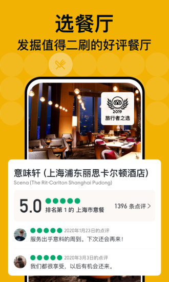 1、TripAdvisor猫途鹰真实点评,汇聚全球旅行者的6亿条真实点评、建议和忠告,帮你做出正确的出行选择。