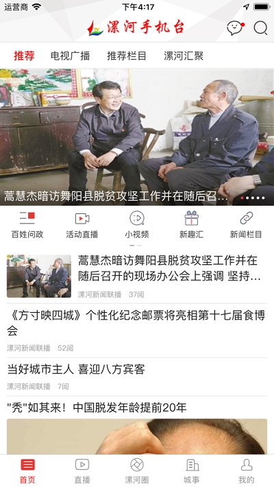 漯河手机台app是一款包含內容普遍的地区手机电视台运用,漯河手机台百姓问政不但能够同歩收看各种电视台直播,漯河手机台新闻客户端还会继续即时给你消息推送新闻资讯,及其个性化服务。