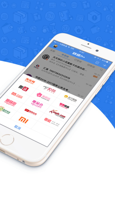 淘宝,天猫,京东,苏宁,微店,美丽说,聚美优品,当当,唯品会,孔夫子旧书网,蘑菇街,国美在线,卷皮,顺丰优选,小米网,顺丰官网;