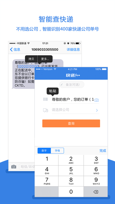 2、智能查快递:直接输单号查询,不用选快递;