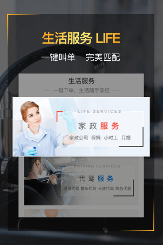 5、整合了多个明星app,上门维修、家政保洁、美甲、外卖配送、租车打车、物流配送等服务;