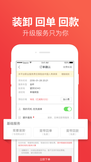 满足拉货送货、批发零售、搬家乔迁、宿舍搬迁、毕业搬运、行李运送、建材搬运、生鲜运输、食品配送、电器送货、家具搬运、大件搬运、物资运输、超市运货、便利店送货、同城物流、展览物料等等找司机用车、约车、包车、叫货车和搬运的便捷服务。