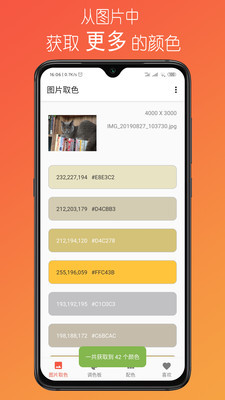 彩羽,一款无广告的色彩收集管理APP。通过对图片取色、调色板配色,建立自己的专属色库和配色方案。是设计、颜色爱好者的随身得力助手。