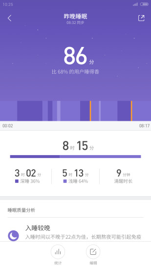 2、监测睡眠状况,自动判断入睡时间,给出阶段性建议;