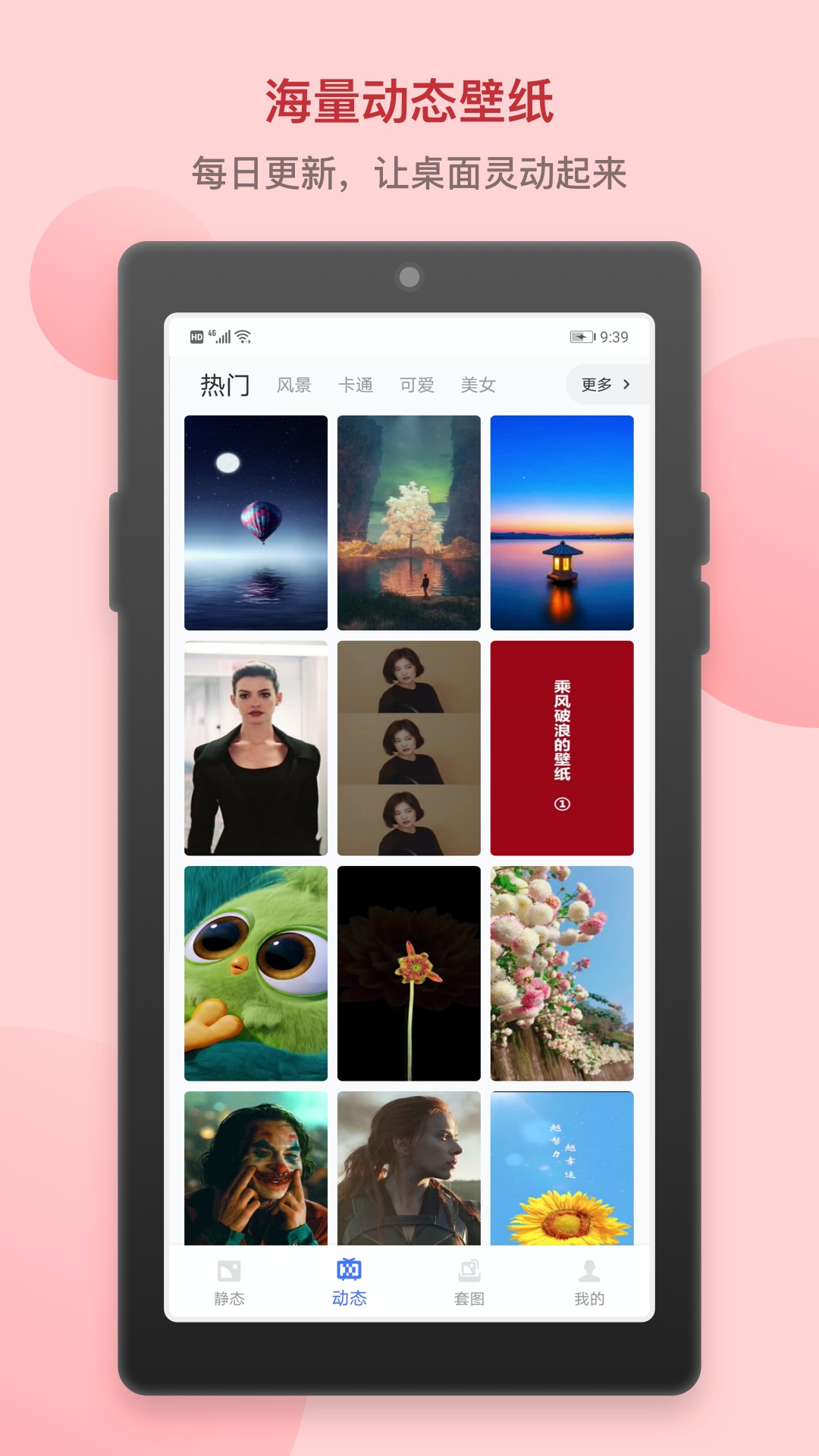 多款精美高清动画,为用户打造独特的壁纸桌面,自动使用和匹配用户的手机屏幕,让用户的手机随心而变