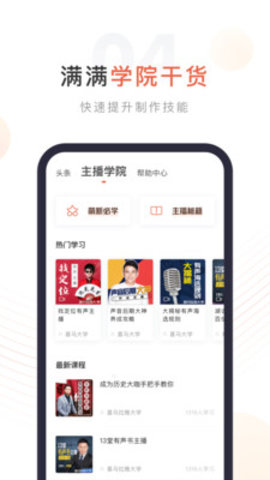 《喜马拉雅FM 主播版》一款专业的主播管理软件,用户可以在线粉丝、节目管理、在线视频课程,教你如何做好主播,帮助用户在线了解行业信息和干货知识,帮助用户快速提升自我,软件支持多种形式的内容创作,各种音视频、图文内容丰富多彩,有各种专业便捷的实用工具,可以帮助用户快速发布内容。