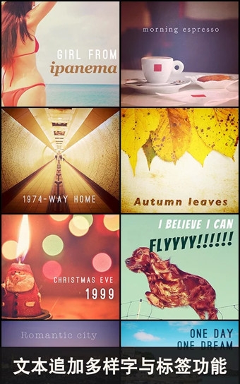 1、支持拍照之后的编辑剪辑以及各色特效铁汁文字的自动加入。