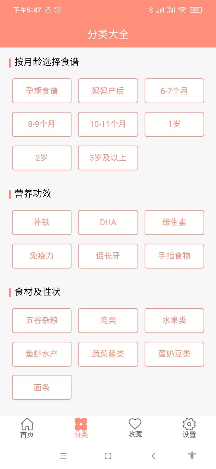 4、不同年龄段的用户可以根据宝宝的年龄选择食谱。
