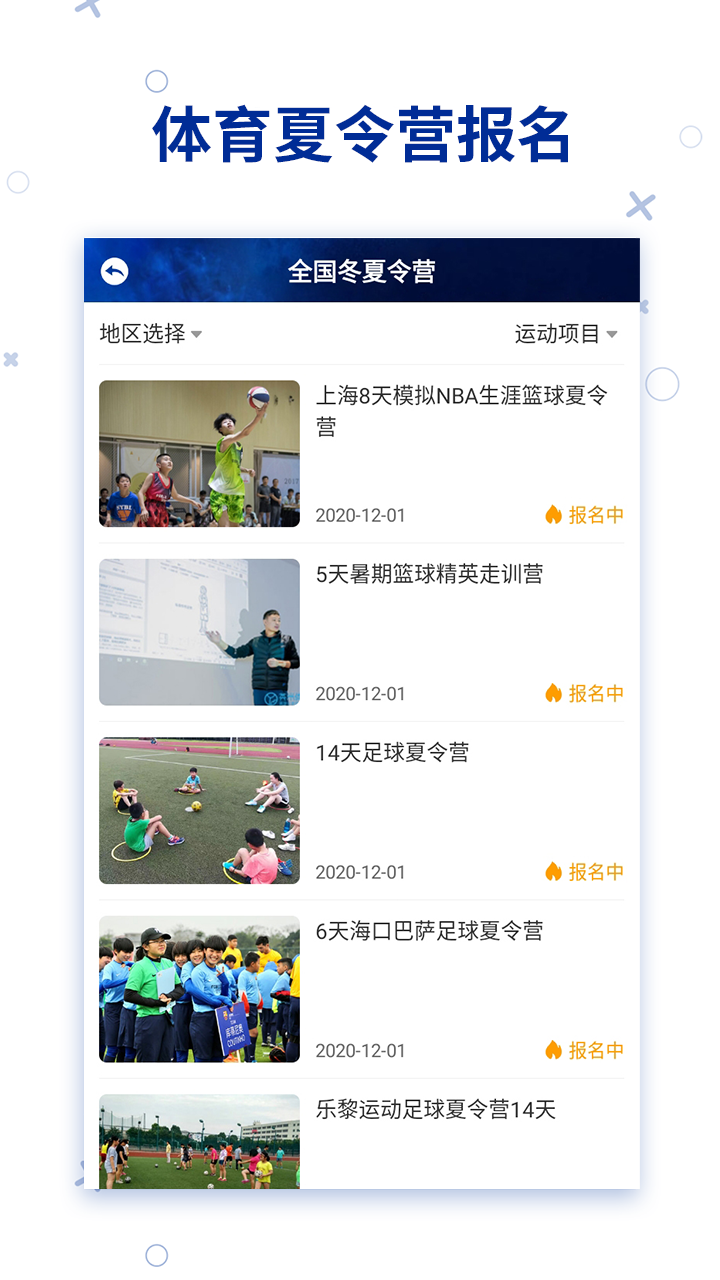 2、在线注册体育夏令营,参加各种感兴趣的活动,关注身边的体育信息。