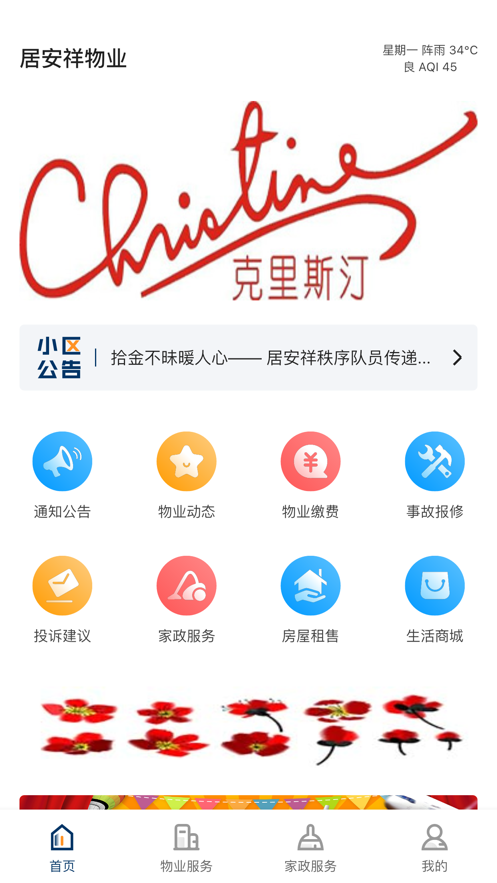 2、公告通知:发布各类社区公告,将最新的物业公告推送到用户手机桌面,实现物业管理信息的实时推送。