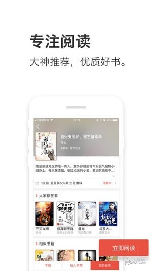 4、高端专业阅读体验:具有高质量的阅读排版,流畅的阅读,省电,节省流量;支持50多种个性化定制,解决你读书时的一切烦恼。