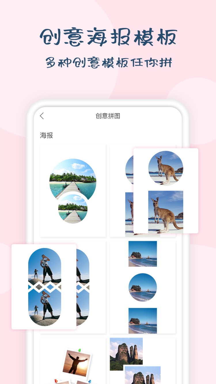 多种创意模板任你拼,还可以添加不同水印字体。